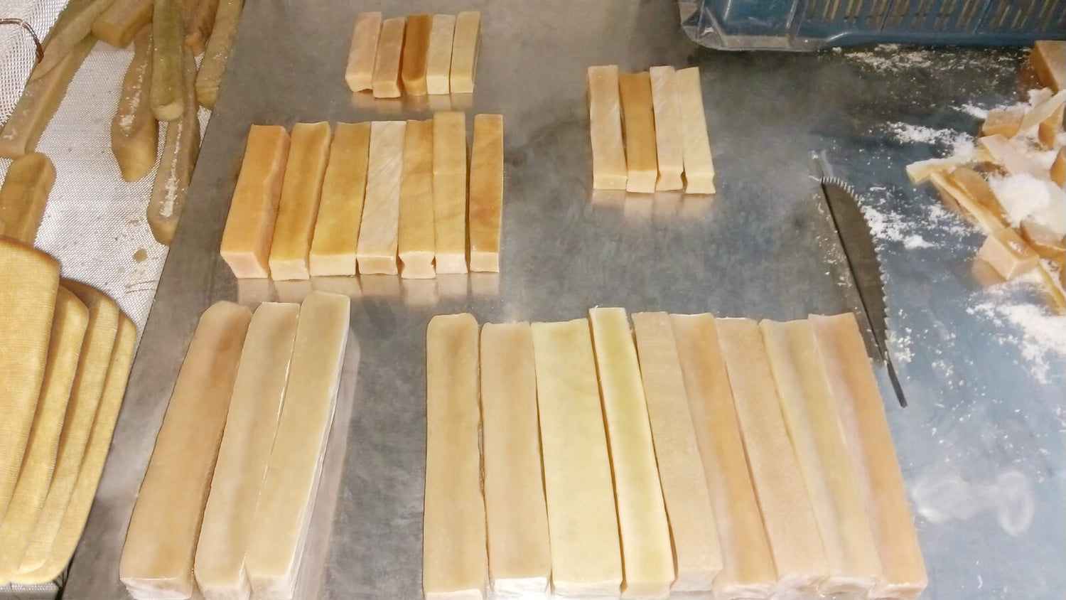 This can lead to loss of freshness (dull-colored, brittle chews). Ultimately, this makes for a much lower quality product than chews that come fresh from the source.